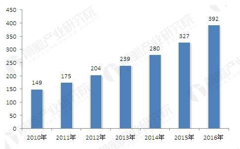 2010年,我国在自动仓储系统级及相关产品方面的市场总额接近1150亿元。近几年,自动仓储应用领域不断拓展,行业应用规模也在不断提升,截止到2016年底,我国自动仓储系统及相关产品市场总额已经超过了390亿元,达到392亿元,同比增长了20%左右。